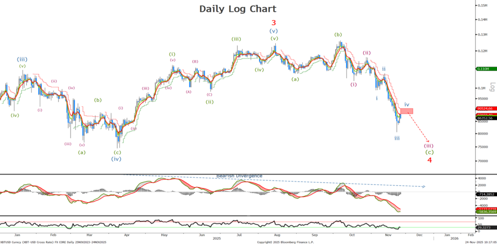 Bitcoin Long Term Chart Last time we said ‘The new count is more bearish with wave (iii) of (v) underway with targets at 86.4K followed by my prefered target around […]