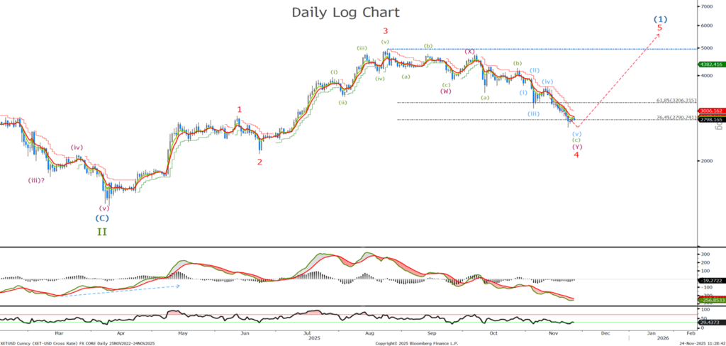 Ethereum Long Term Chart I have relabelled the daily chart that currently calls for a correction up towards the 3244-3437 level to complete the third wave of the wave (b) […]